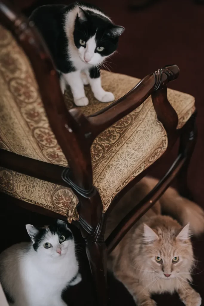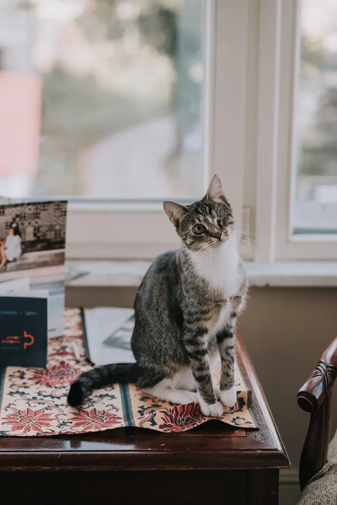 Sesja tego typu może się odbyć w Waszym domu. Jest to z pewnością najbardziej komfortowa sytuacja dla samych zwierząt. Oczywiście dużo zależy też od charakteru Waszych kotów. Jeżeli nie lubią podróżować, a nowe miejsca są dla nich stresujące, najlepiej będzie pozostawić je w przestrzeni, którą doskonale znają. Wiadomo – komfort zwierzaków jest w tej sytuacji najważniejszy. Z pewnością najlepiej znacie swoje zwierzaki i wiecie, jak reagują na zmiany. Jeśli podróże nie są im straszne i odnajdują się szybko w nowym otoczeniu, sesja może się odbyć właściwie wszędzie: w wynajętym apartamencie, uroczym domku w górach, klimatycznym pensjonacie. Pamiętajcie tylko by sprawdzić wcześniej, czy dane miejsce jest przyjazne zwierzętom.