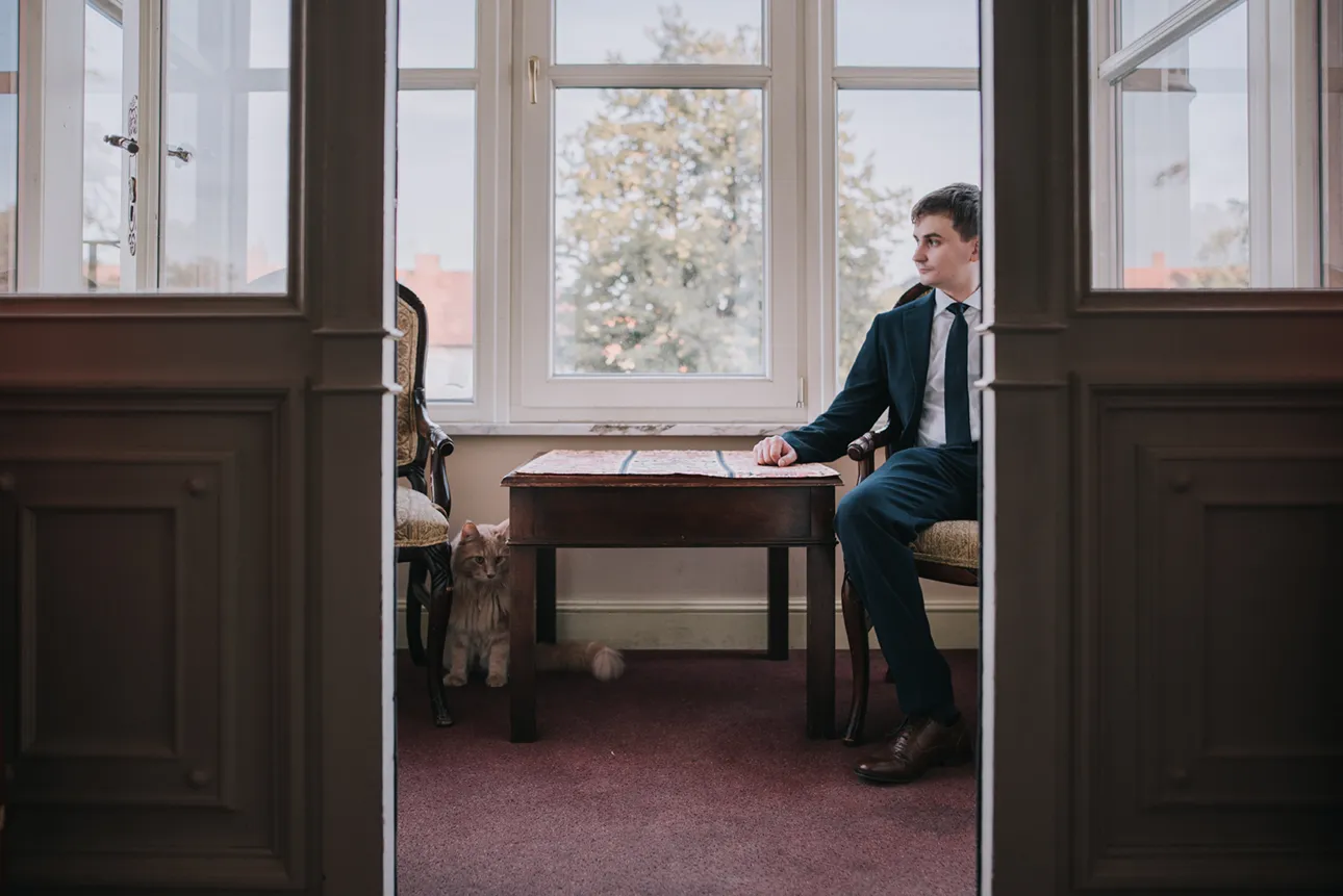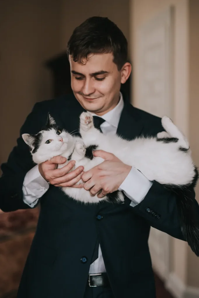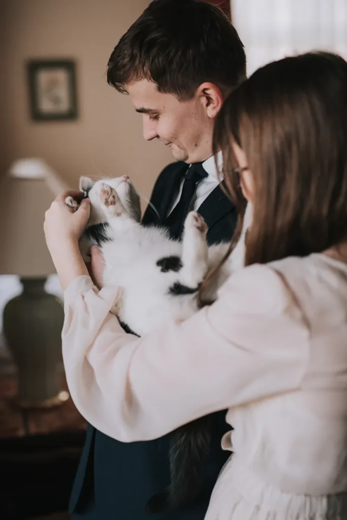 Być może chcielibyście jednak, by Wasze koty były z Wami nie tylko w czasie sesji zdjęciowej, ale stały się również istotną częścią samego dnia ślubu? Nic w tym dziwnego – koty to członkowie rodziny. Nic nie stoi na przeszkodzie, by podkreślić to ich obecnością w czasie reportażu ślubnego. Jeśli planujecie przygotowania w domu czy mieszkaniu, koty śmiało mogą stanowić istotną część przygotowań. Warto mnie uprzedzić, jeśli rozważacie taką opcję. W takim przypadku na ten element reportażu z pewnością zarezerwuję więcej czasu niż zwykle.