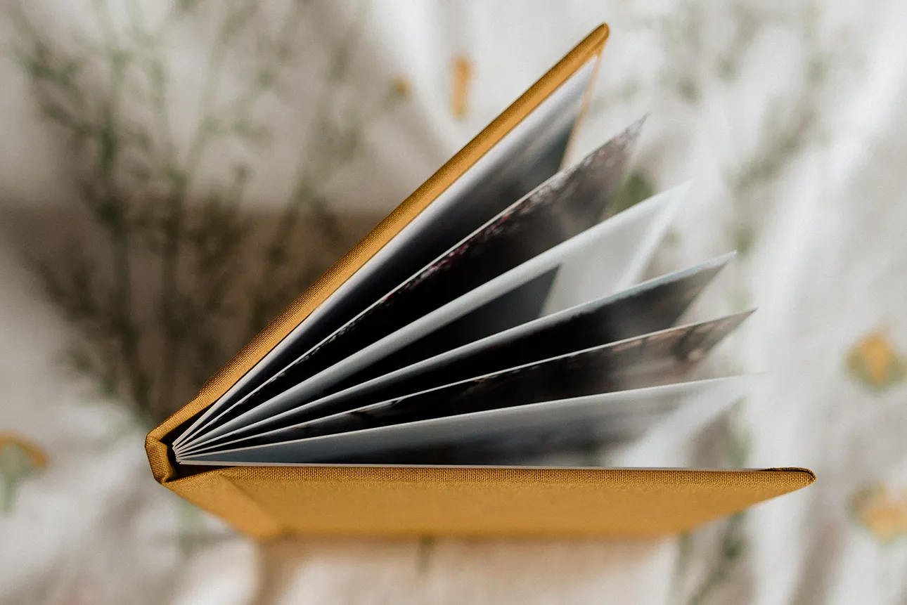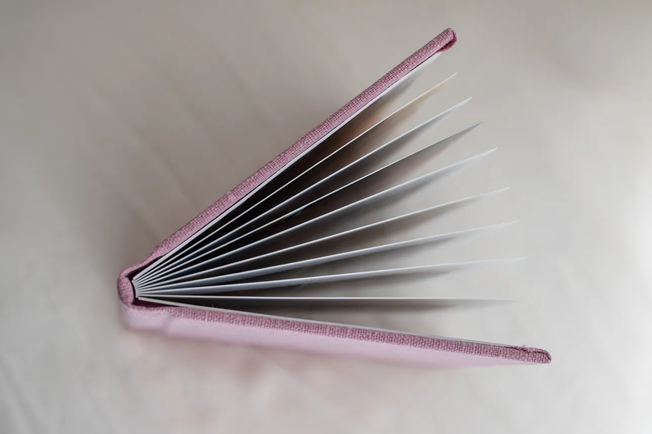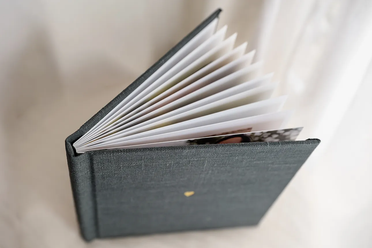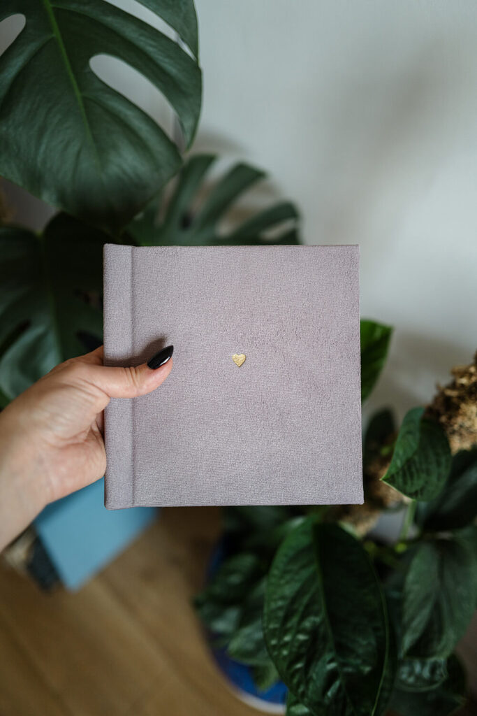Każdy album mini drukowany jest na wysokiej jakości papierze jedwabnym, a oprawa przygotowywana jest ręcznie z płótna lnianego, zamszu lub weluru. Karty są sztywne, ale giętkie. Strony albumu otwierają się na płasko. Rozmiar 15×15 cm polecam jako pamiątkę z sesji zdjęciowej, albo uroczy prezent dla bliskiej osoby. Przygotowałam krótki poradnik, w którym wyszczególnione zostały wszystkie możliwości personalizacji albumu.