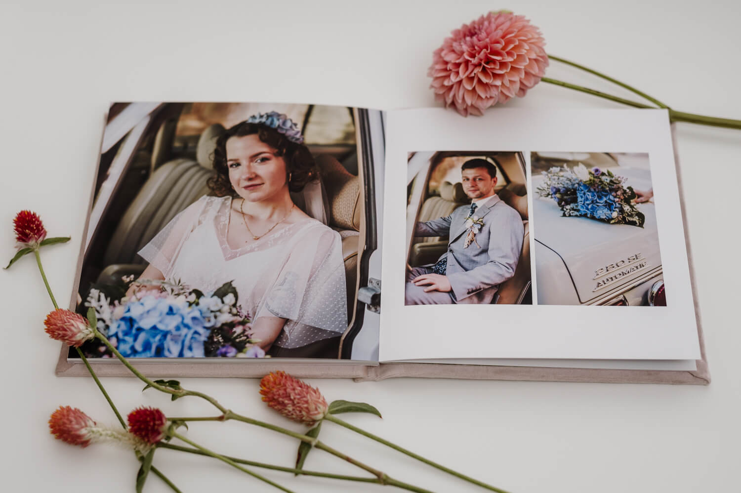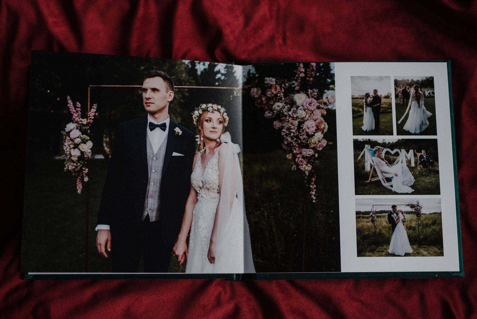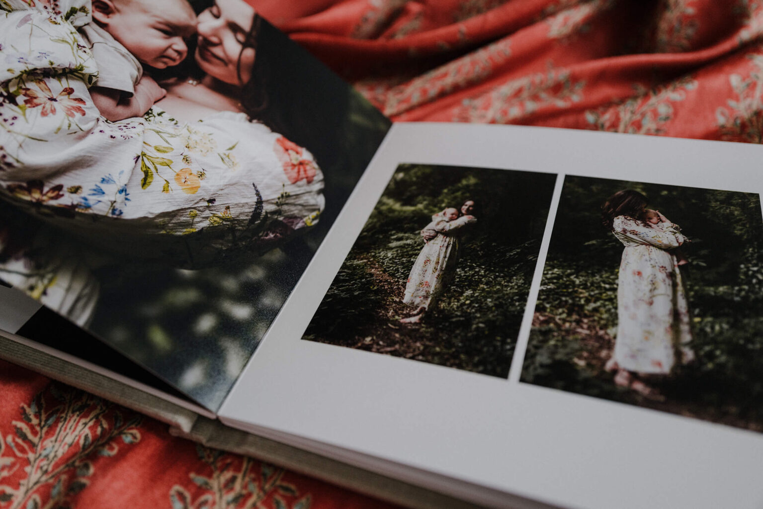 Każdy album mini drukowany jest na wysokiej jakości papierze jedwabnym, a oprawa przygotowywana jest ręcznie z płótna lnianego, zamszu lub weluru. Karty są sztywne, ale giętkie. Strony albumu otwierają się na płasko. Rozmiar 15×15 cm polecam jako pamiątkę z sesji zdjęciowej, albo uroczy prezent dla bliskiej osoby. Przygotowałam krótki poradnik, w którym wyszczególnione zostały wszystkie możliwości personalizacji albumu.