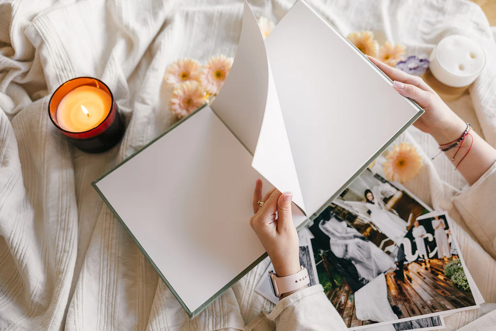Każdy album drukowany jest na wysokiej jakości papierze (jedwabnym lub matowym), a oprawa przygotowywana jest ręcznie z płótna lnianego, zamszu lub weluru. Karty są sztywne, ale giętkie. Strony albumu otwierają się na płasko. Większe rozmiary będą idealne na zdjęcia z reportażu ślubnego, lub Waszej sesji zdjęciowej. Rozmiar 20×20 cm polecam jako pamiątkę z sesji zdjęciowej. Przygotowałam krótki poradnik, w którym wyszczególnione zostały wszystkie możliwości personalizacji albumu.