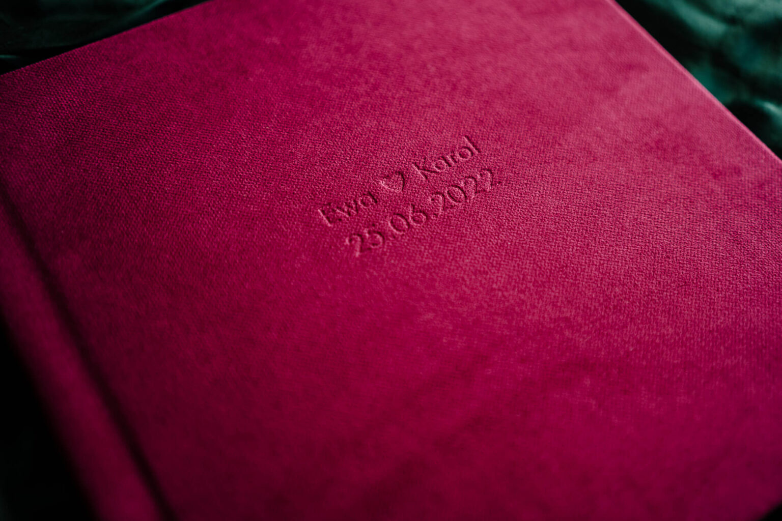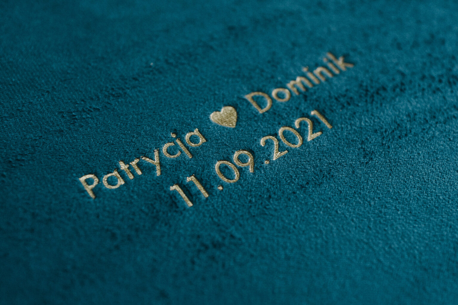 Tłoczona personalizacja może obejmować Wasze imiona, datę, serduszko lub dowolny tekst.